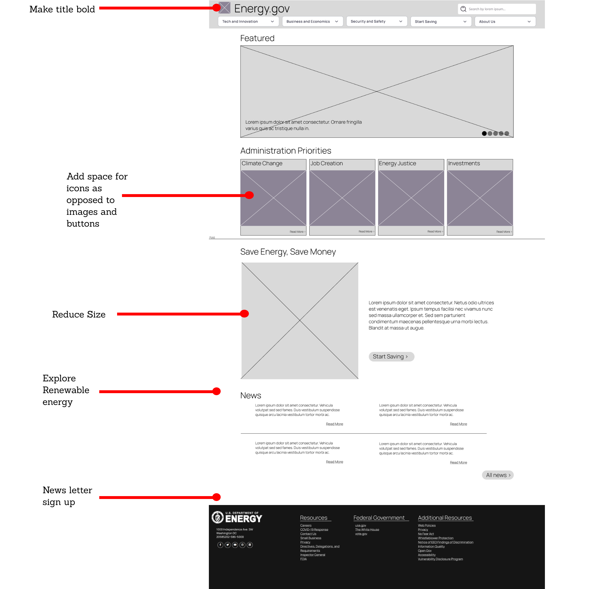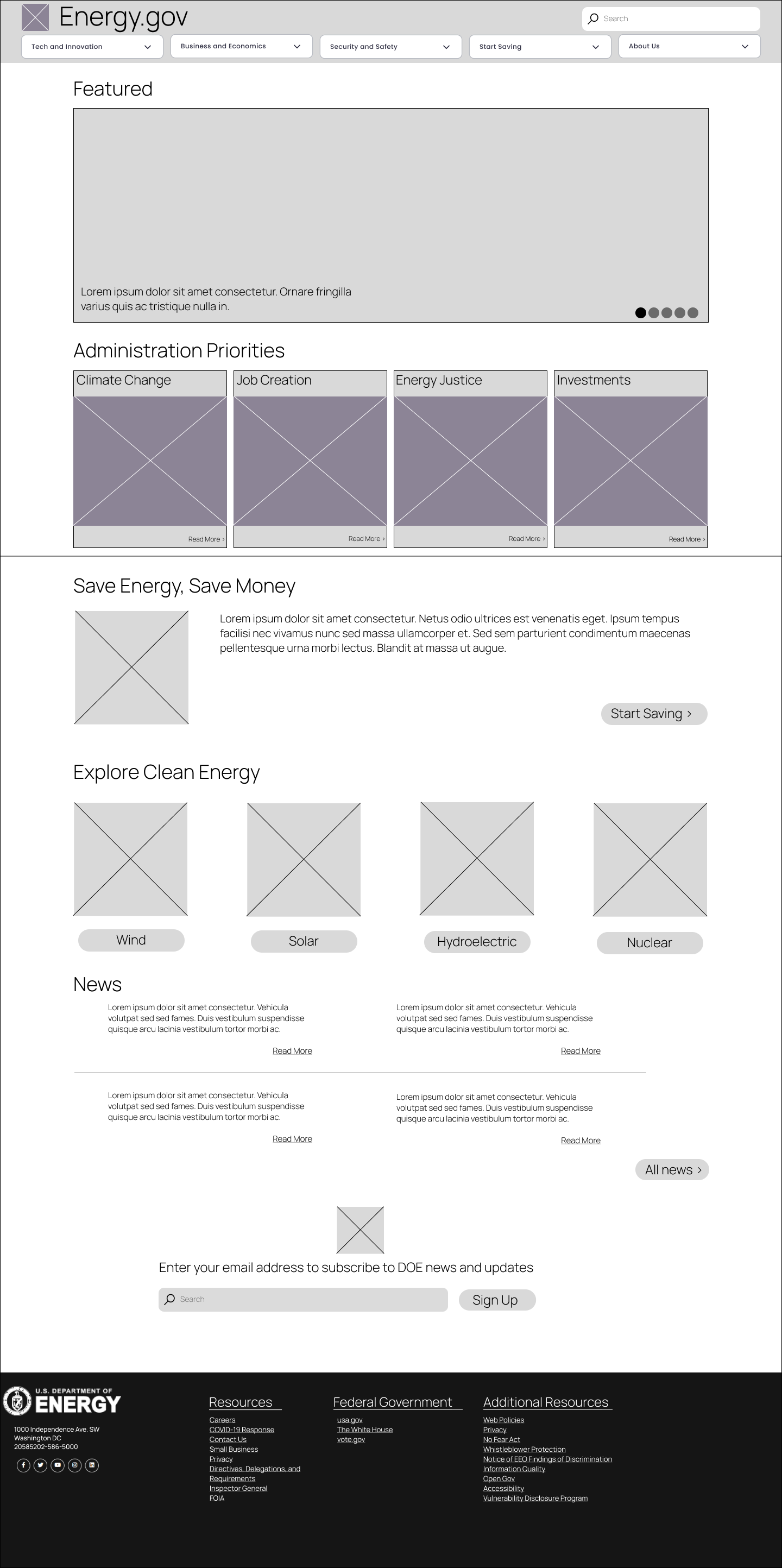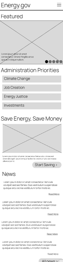 Once I felt that I was in a good position with wireframes and information architecture, I proceeded to begin designing the site’s UI and visuals. I wanted to modernize the site while keeping it informational and clean. However, I did not want to have the authoritative vibe that many other government sites have. The energy department is about progress and innovation and I felt that the site should embody that mission.