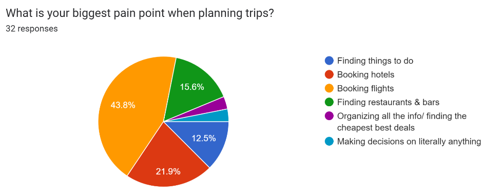 To understand what and if there was a problem to be solved, I needed to begin by conducting research. I wanted to understand pain points experienced by users when making travel arrangements and what they need help with when travelers arrive at their destination.